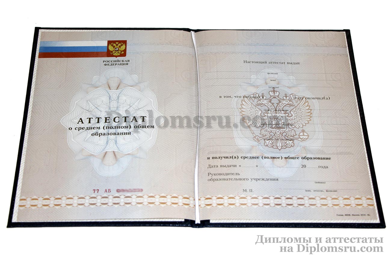 Диплом о среднем образовании 2014-2026 без QR кода с приложением, в твердой обложке. «Гознак». |