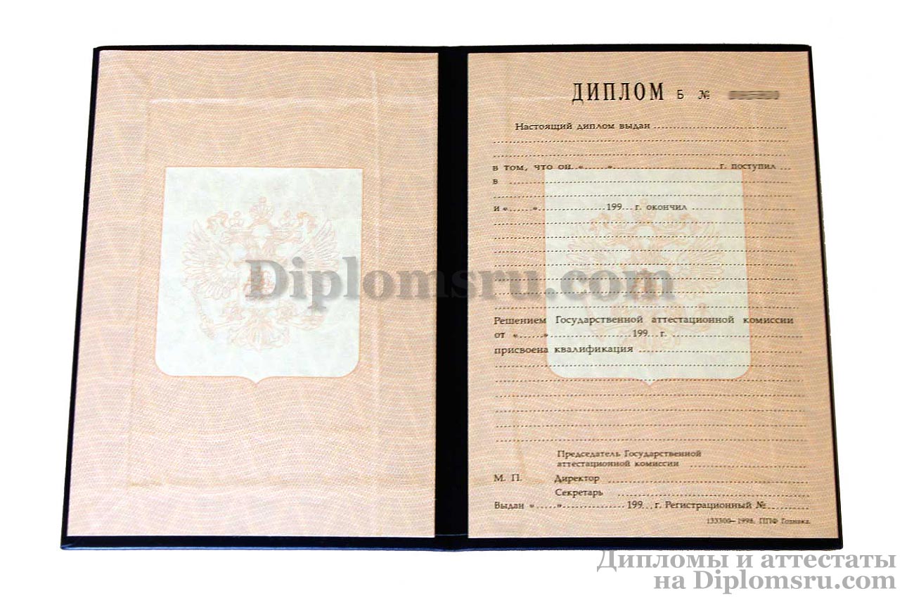 Диплом о высшем образовании СССР (РСФСР) до 1996 года, с приложением, в твердой обложке. «Гознак». В наличии: специалист. |